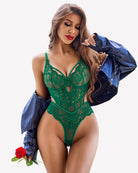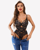 Lace Teddy V Neck Cut Out Snap Crotch Bodysuit