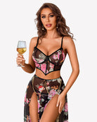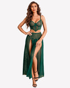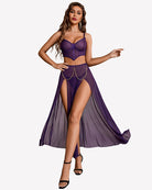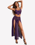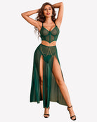 • Material: This Mesh Crop Top + Split Skirt + Thong 3-Piece Set Lingerie is made of 95% Polyester, 5% Spandex, soft and comfortable to wear! Prefect for showing off curves.