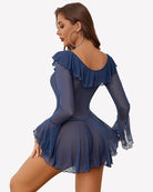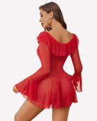 • Designs: Avidlove Deep V Neck Lingerie Dress, Rave Ruffle Dress, Long Sleeve Lingerie, Transparent Lingerie, hemline enhances leg silhouette; Sheer Lingerie stretchy ruffle dress creates a slimming effect, enhancing your figure and make you more charming