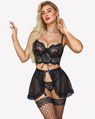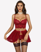 • Features: Women's lingerie set features hollow lace cups, adjustable straps, sexy lace mini skirt and panties to add vitality to your love.