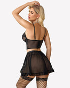 Garter Bralette Open Front Mini Skirt with G-String