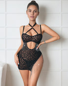 - Featuring a fierce leopard print and a daring hollow chest detail, this halter-style nightdress flatters the figure with its fitted bodice and sultry side split.