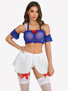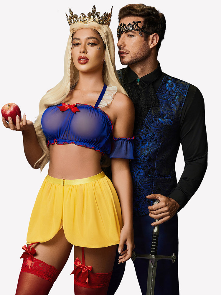 - Snow White set package includes: Halter Neck Ruffle Crop Top *1, Mini Skirt with G-string *1, Arm band *2, 5 piece set, best cosplay costume for Halloween. (NO including matching stockings)