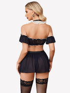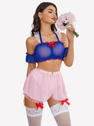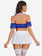 - Cosplay lingerie is designed with the halter crop top and mini lingerie skirt set featuring a touch of sultry charm, playful ruffled edges and dreamy sheer fabrics that add an innocent seduction and whimsy, showcasing your lovely and charming look!