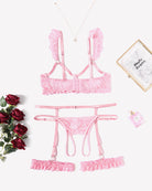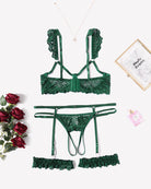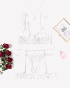 Floral Lace Bra and Panty Garter Sets