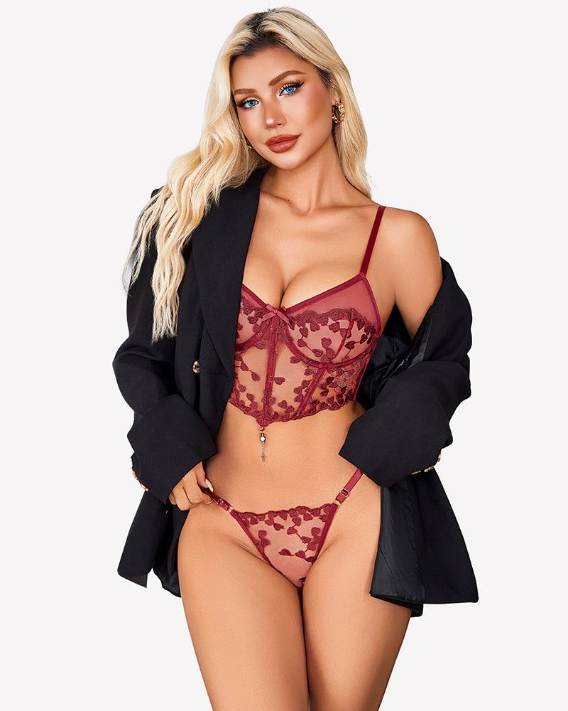 Our underwire sets are both supportive and sultry, blending comfort with sex appeal. The structured cups give your breasts all the lift and shape needed for a flawless silhouette under everything from casual wear to evening attire. The third piece-garter belt or matching thong-is where personal taste can come into play regarding levels of seduction.