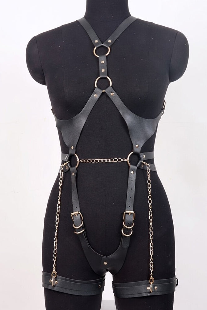 Cross Strappy Mesh Garter Belts Lingerie Set