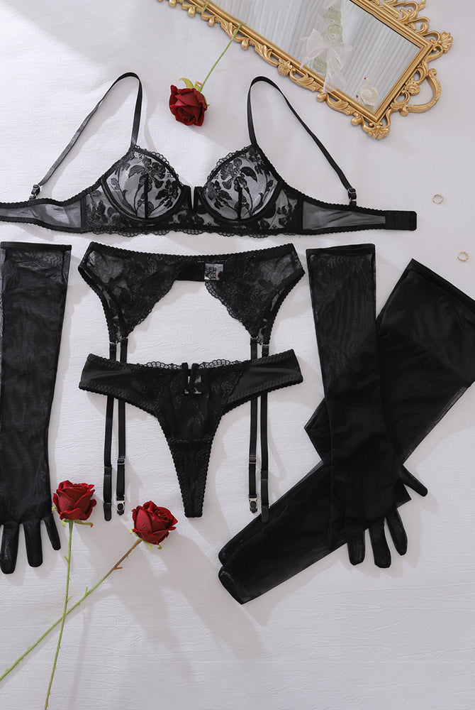 Sheer Daisy Embroidered Lingerie Set