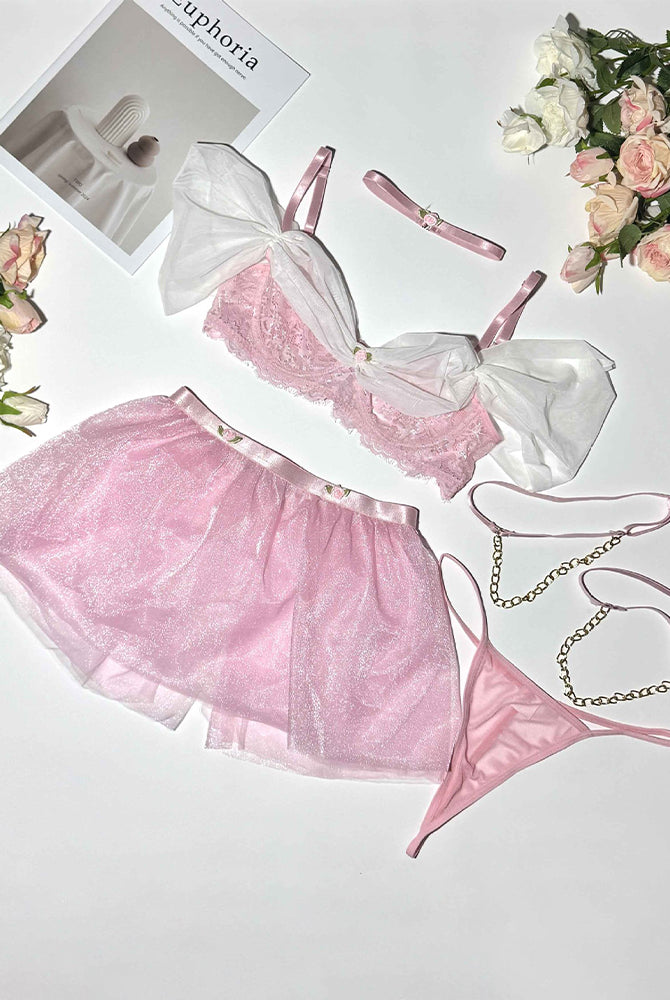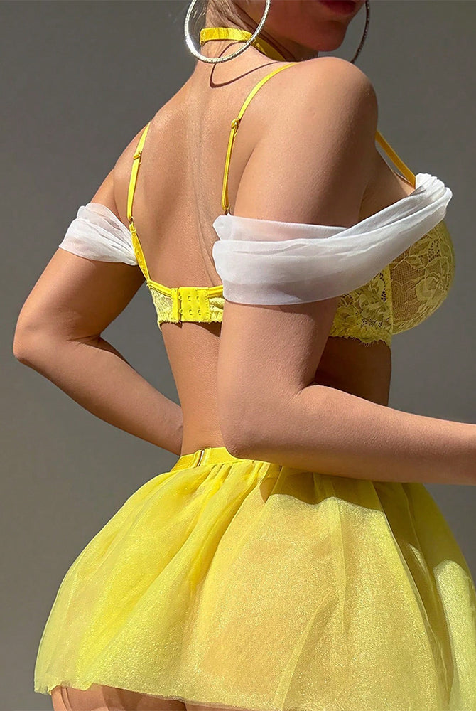 Tulle Off-Shoulder Sweet Lingerie Set