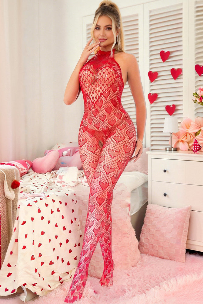 Red Heart Halter Socks Bodysuit