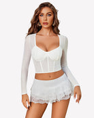 - Package Contents: 1 x square neck mesh top(bra not included).