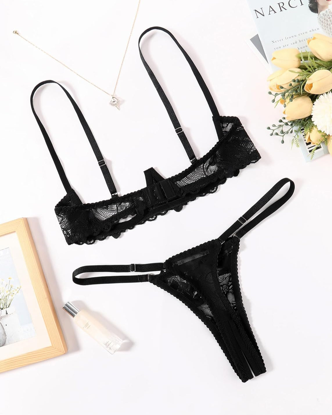- Features: This sexy bra and panty set features back hook-and-eye closure, adjustable straps, underwire, matching open thong, delicate lace lingerie set to show your feminine charm
