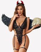 - Lace Design: The Lace bodysuit features intricate floral lace, deep V Neck backless detailing and adjustable spaghetti straps. one pair of thigh straps accentuates your silhouette and adds a seductive touch, perfect for the woman who seeks elegance and seduction at the same time.