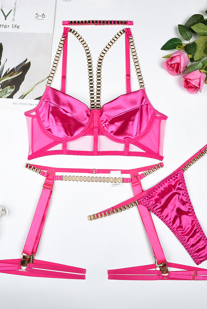 Cross Strappy Mesh Garter Belts Lingerie Set