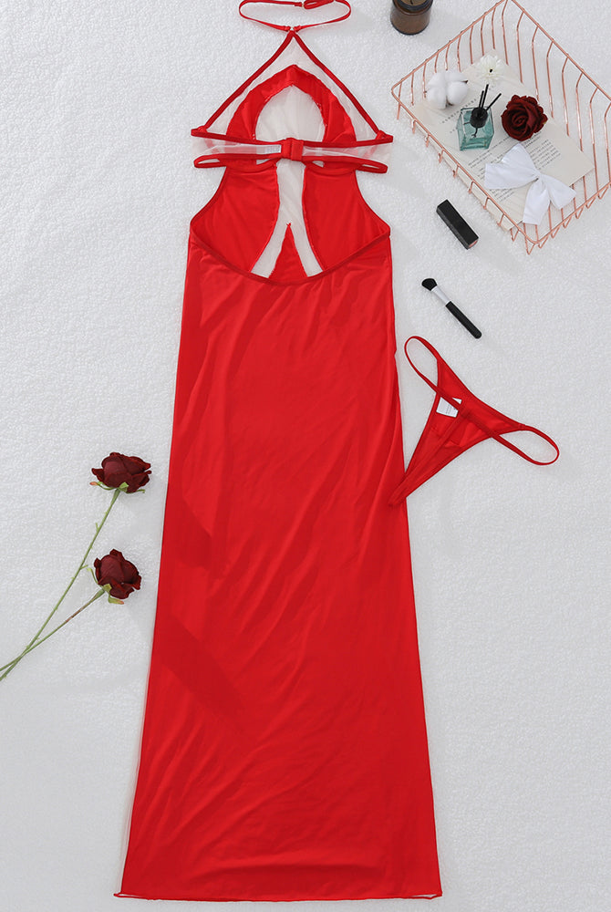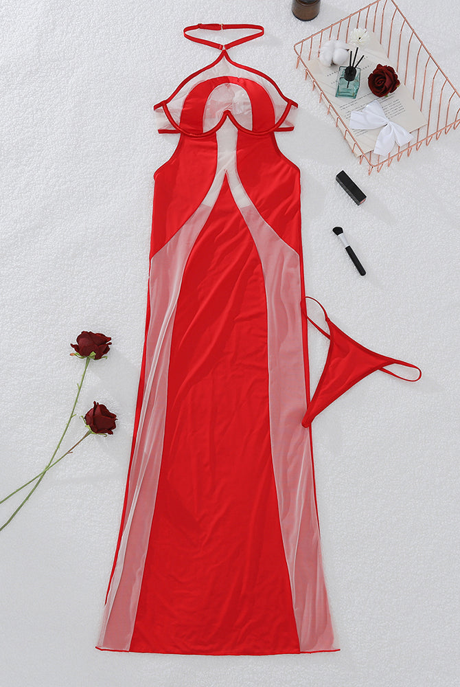 Hollow Out Floral Lace Fishnet Lingerie Dress