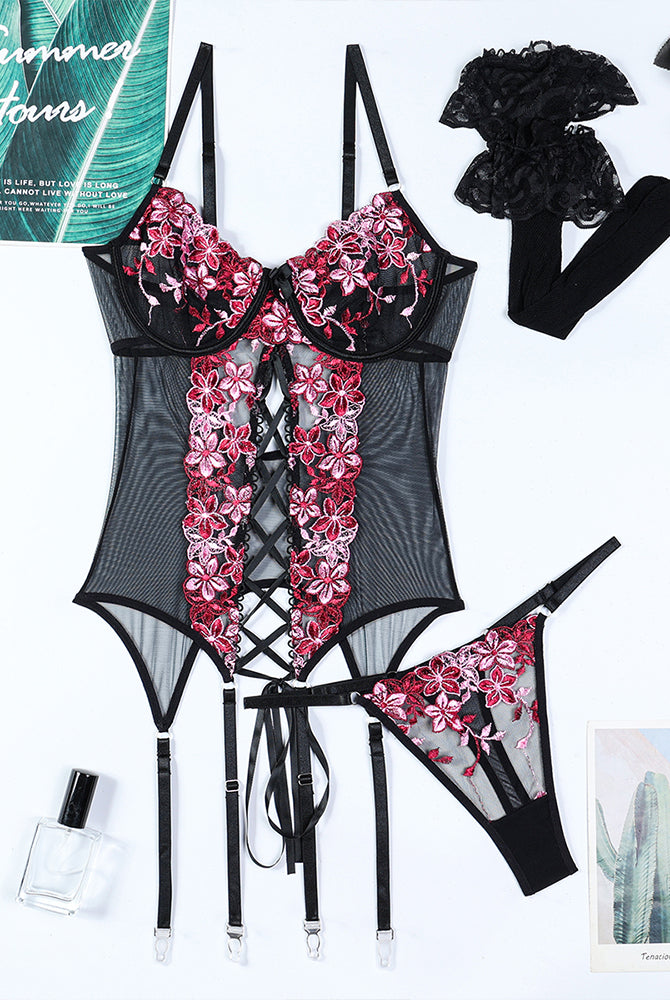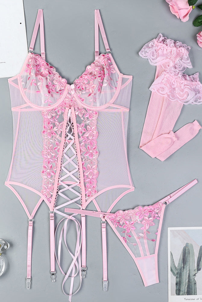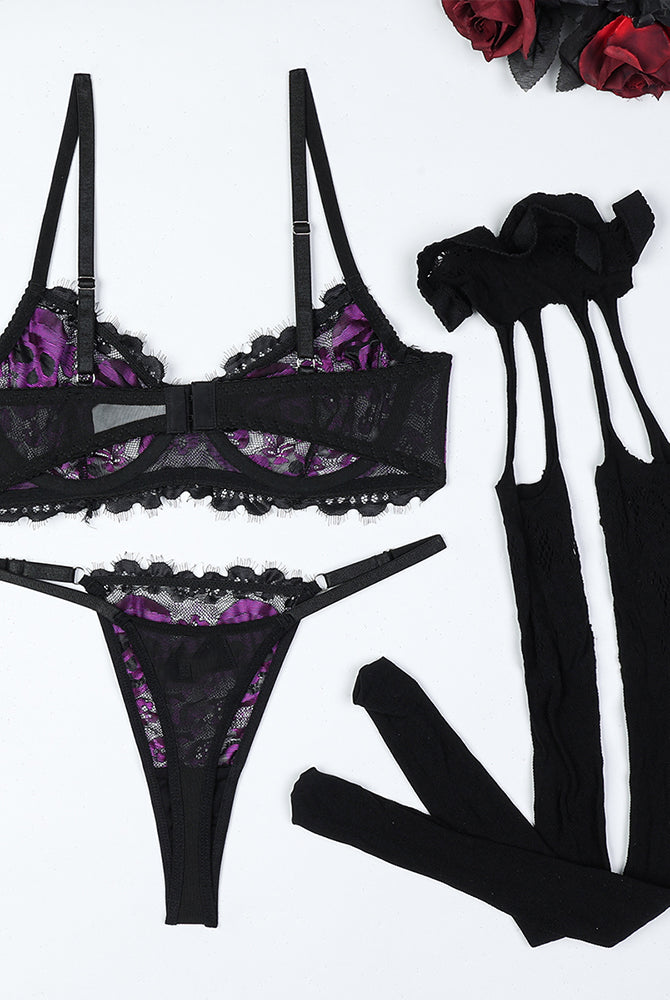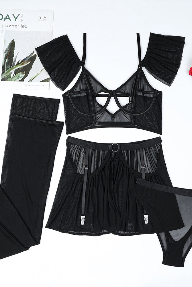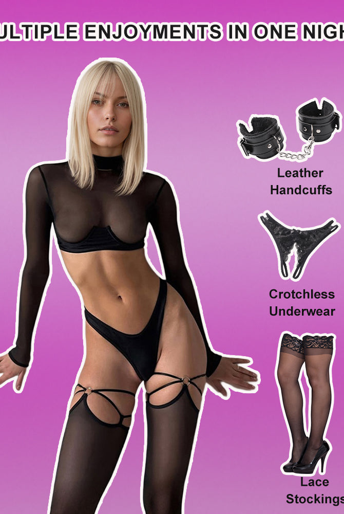 Romantic Mesh Crop Top Sets+Stockings