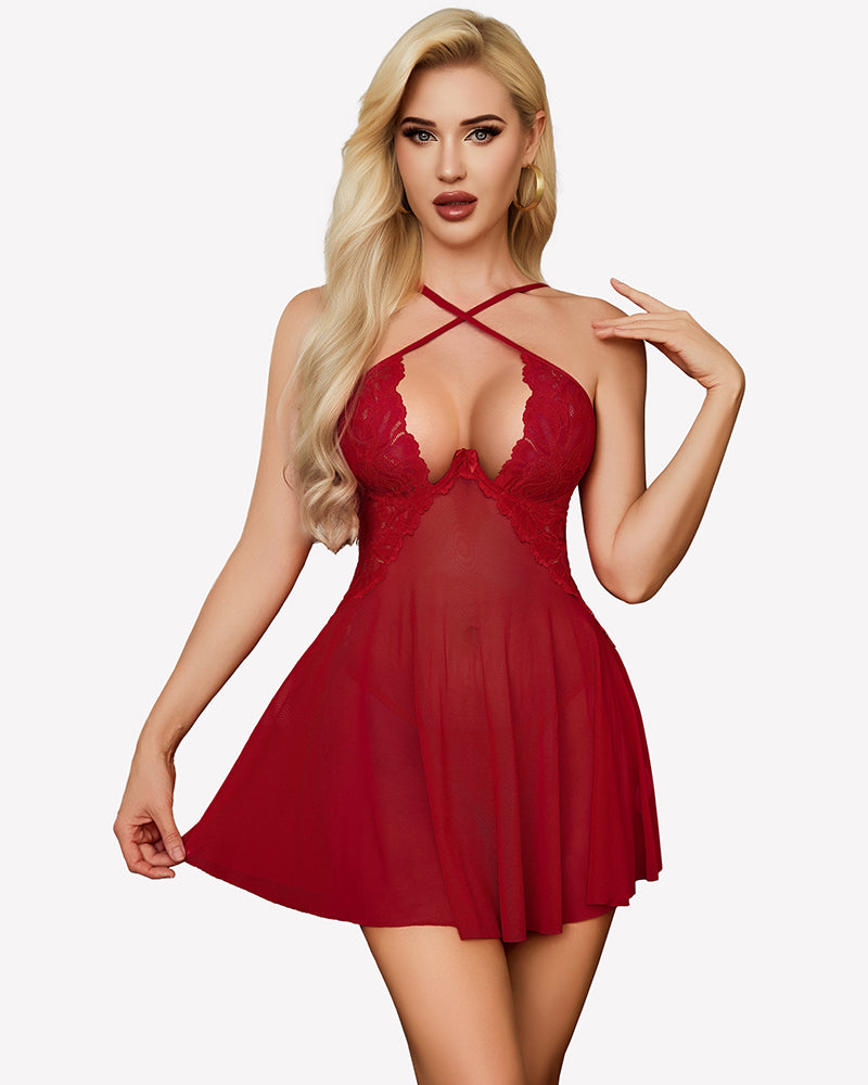 Lace Babydoll Dress Sheer Mesh Dress With Thong