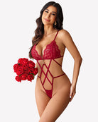 - Design: Womens teddy lingerie features exquisite scallop lace detailing and golden chain rings, combined with an alluring elastic cross strap design that accentuates your curves, making you confident and sexy at every hot night