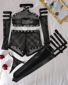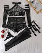 Fishnet Halter Lingerie Set+Gloves+Stockings