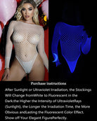 - Glowing at Night These fishnet bodysuit will glow at night. After sunlight or UVlight, the outfit will change from white to fluorescent blue.