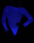 Luminous Blue Long Sleeve Fishnet Bodysuits