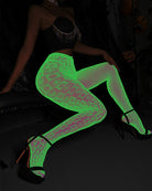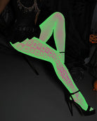 - Glowing at Night. These fishnet socks will glow at night, with a design. After sunlight or UV light, the stockings will change from white to fluorescent.