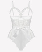Lace Ruffle Mesh Bodysuit with Satin Tie