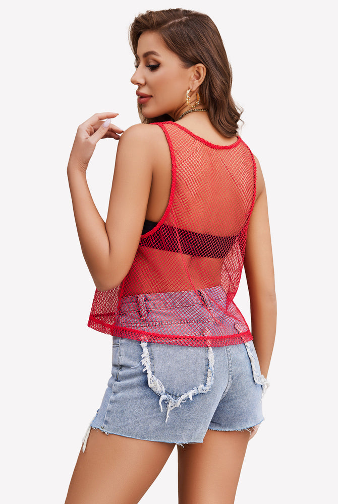 Fishnet Top Sleeveless Fishnet Blouses Shirt