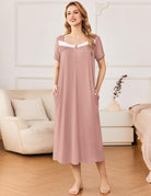 House dress with pockets for convenience are deep enough to hold your phone and keys; buttons front sleep dress making it easier to put on and take off.