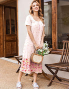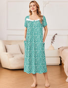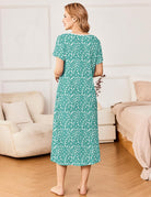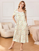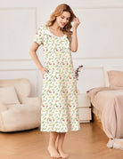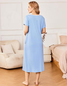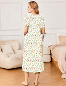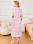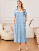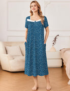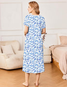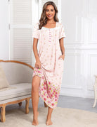 Ekouaer Short Sleeve Floral Nightdress Button House Dress with Pockets