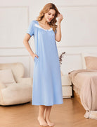 It is made of 95% Polyester, 5% Spandex which is lightweight, breathable, comfy and flattering. Ladies nightgown with ultra soft and breathable material fit elegant women for deep sleep & relaxation.