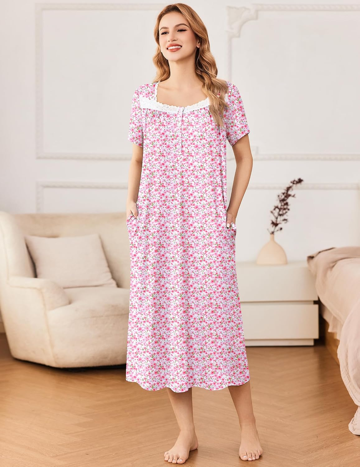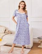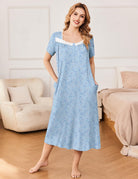 It has square neckline, lace trim, buttons placket, floral print/plain design and beautiful victorian style. Vintage nightgown for women hit mid-calf length that provides great coverage.