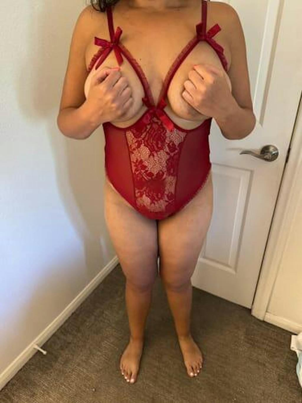 Cutout bra Ruffle trim and bow decor Hook and eye closure Delicate floral lace and mesh panel Adjustable shoulder strap Cut out backless design Crotchless Package: 1*Teddy lingerie.