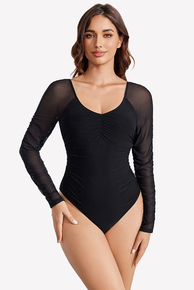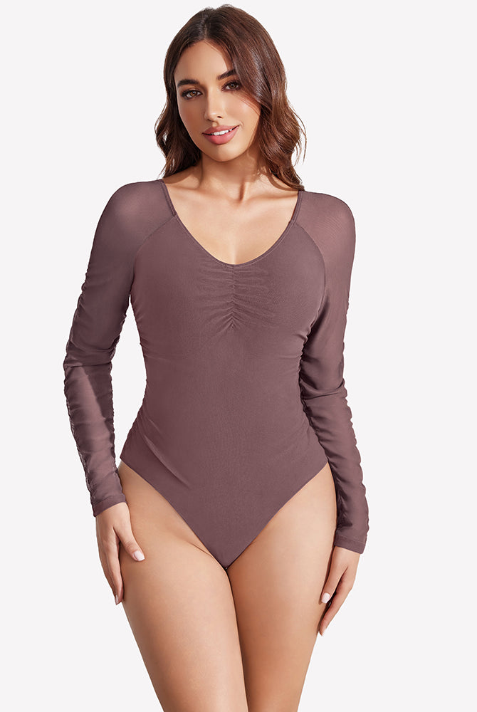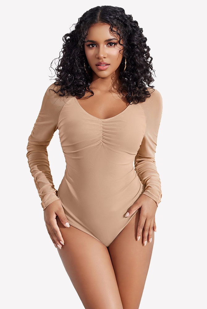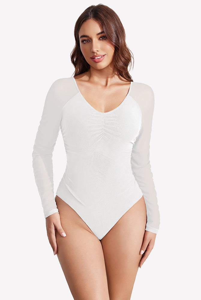 Long Sleeve Bodysuit Mesh Ruched Shapewear