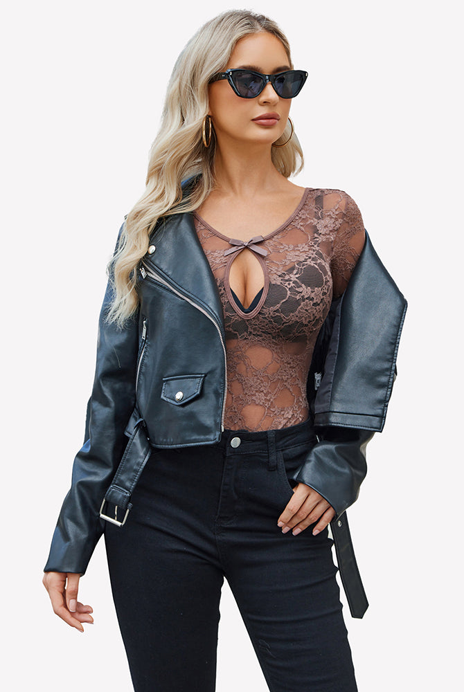 Long Sleeve Bodysuit Lace Tops Two Piece Set
