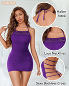 - SEXY DESIGN: This babydoll lingerie set halter chemise dress for women featuring sexy backless with criss cross, sleeveless, Open Back Design, Adjustable Shoulder Straps, perfect lace neckline, the bodycon nightgown reveals the most attractive and elegant waist curve for women.