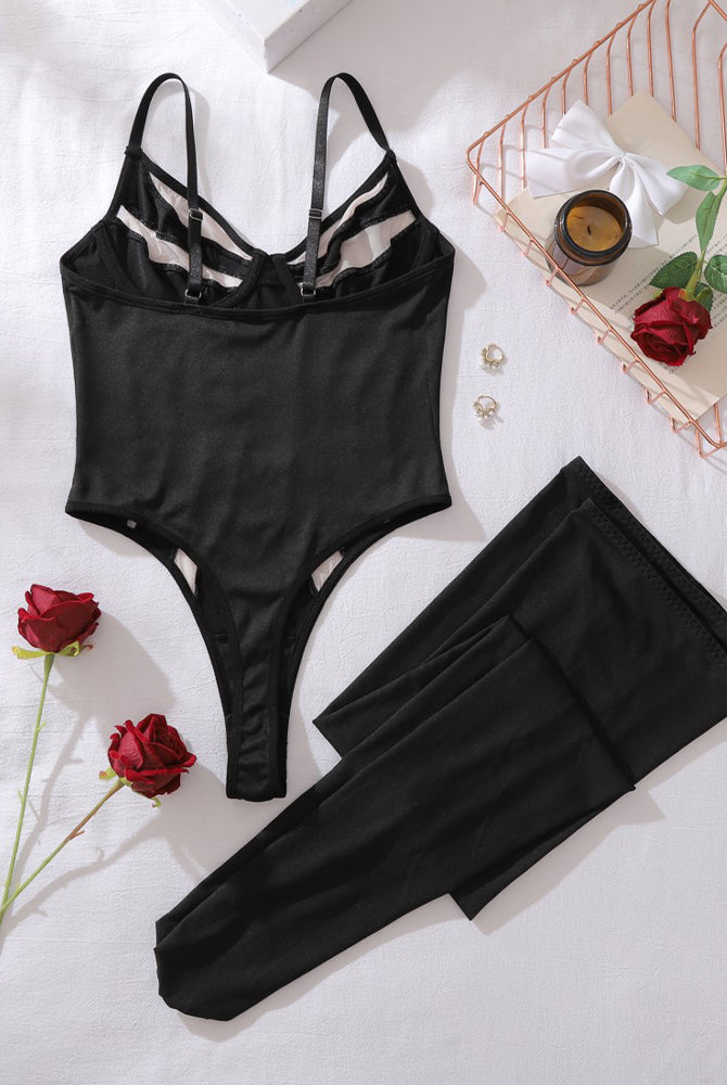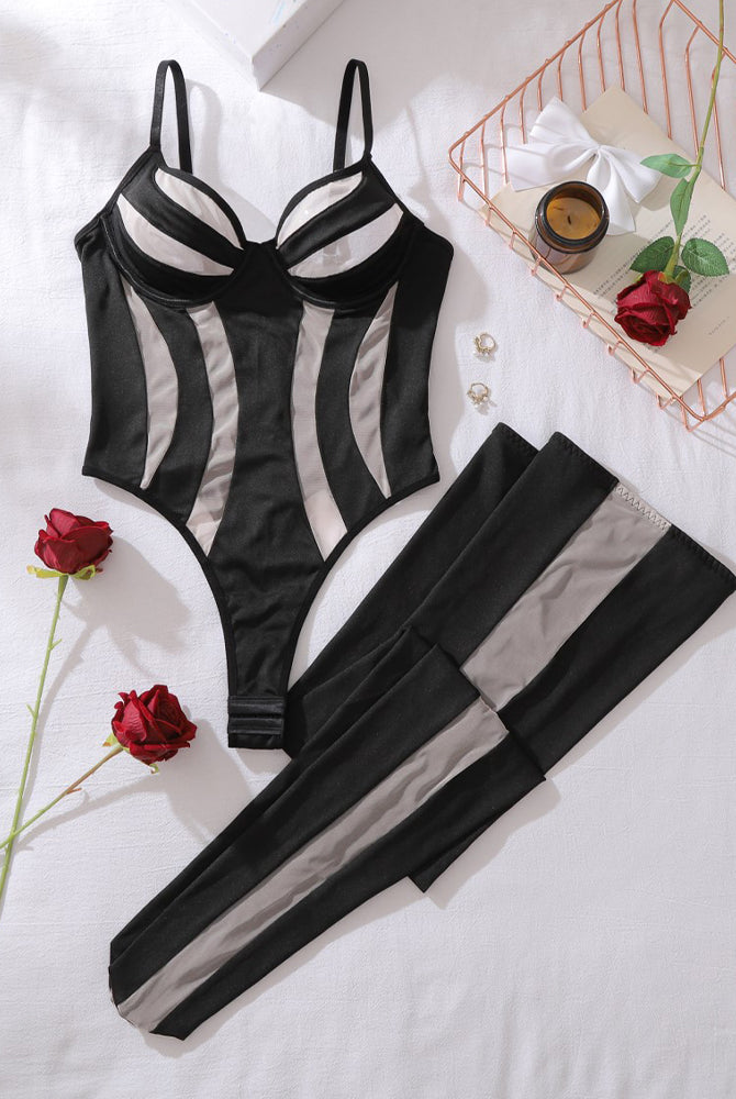 Dessous-Set mit BH und Strümpfen mit Herzausschnitt