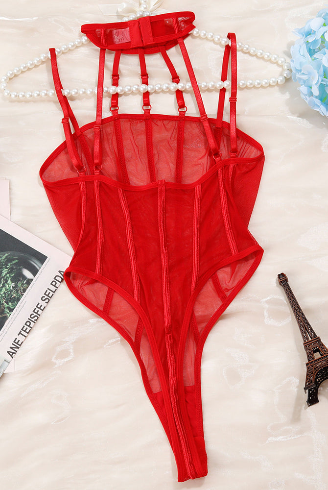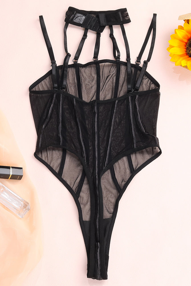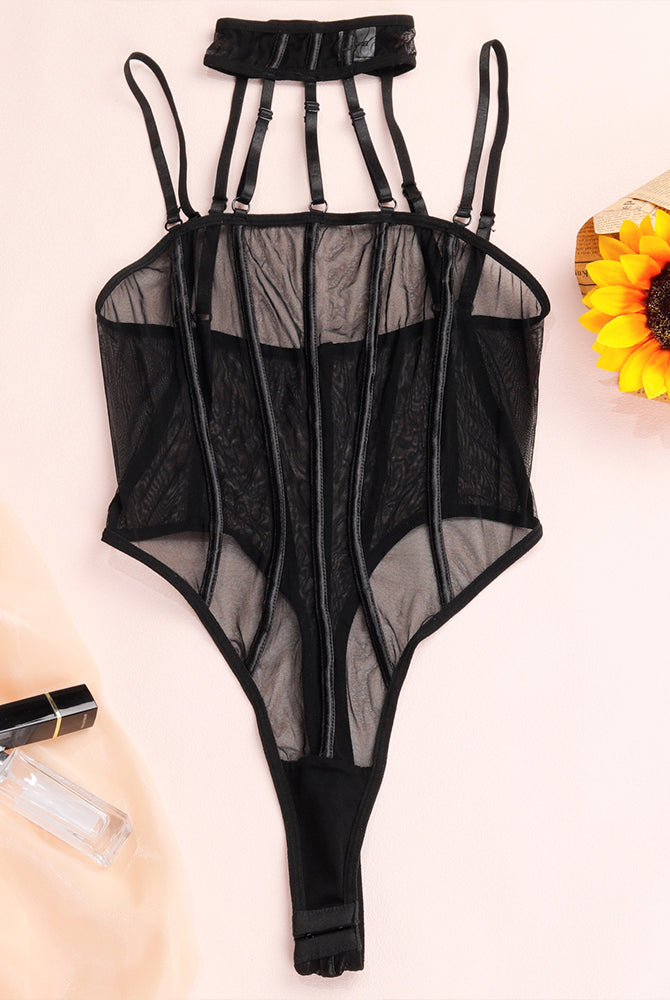 Durchsichtiger Patchwork-Bodysuit aus Netzstoff