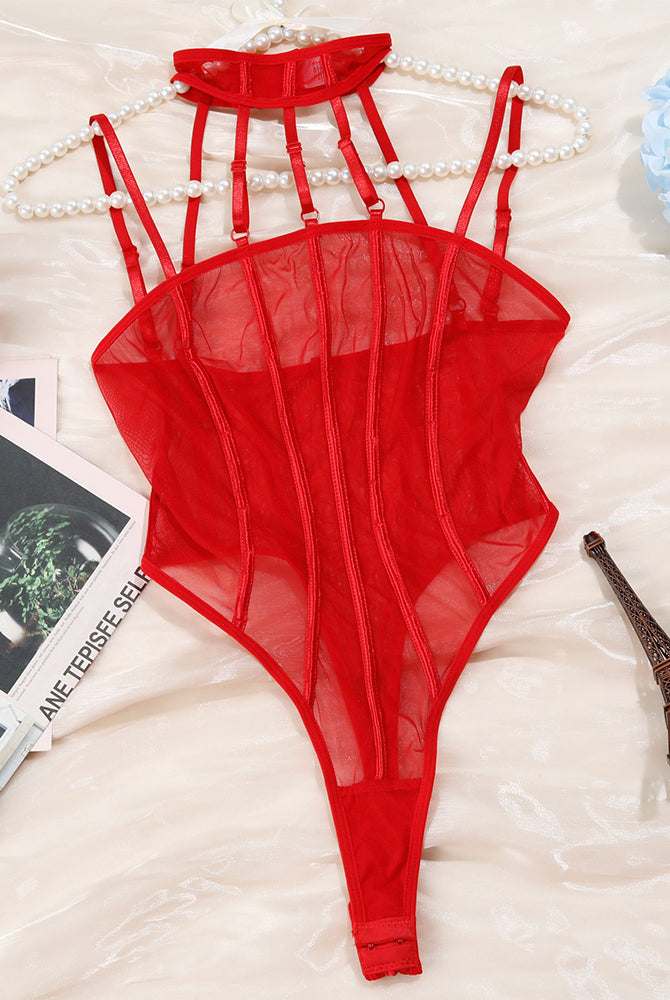 Rückenfreier Body mit tiefem V-Ausschnitt und Kette