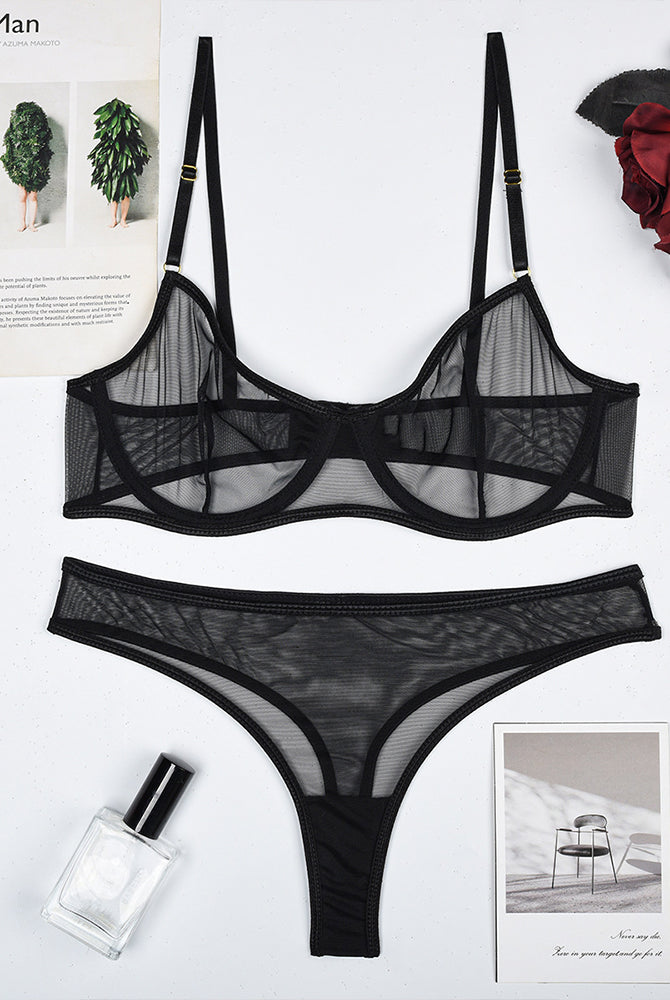 Transparentes, hohles O-Ring-Netz-BH-Höschen-Set