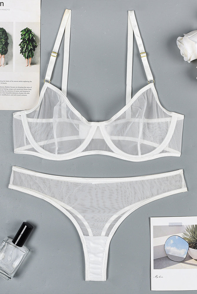 Durchsichtiges Dessous-Set mit Schleife und Spitze
