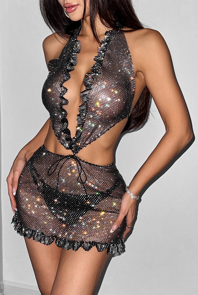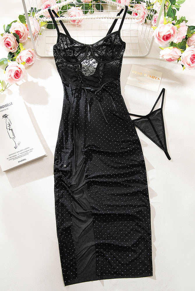 Schulterfreier, langärmliger Netz-Body