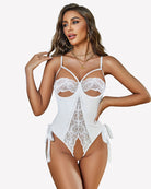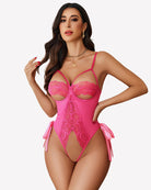 - Eigenschaften: Diese Teddy-Dessous für Damen mit Cutout-BH, Push-up-Bügel-BH, Spitze und Kunstleder, seitlichen Schleifenakzenten, praktischem Schritt, gekreuzter Schnürung am Rücken und verstellbarem Schultergurt sorgen für die beste Passform
