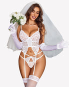 - Package Content: 1 * Lace Bodysuit with Garter Belts + 1* panty(NO STOCKINGS).