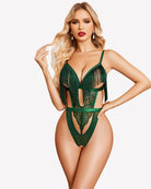 - Design: Lace teddy lingerie features a deep V with tassel, couture design, crochless bottom, back hook-and-eye closures adjustable straps this one piece lingerie adds a touch of allure to your bedroom attire, providing a flattering and sexy look.