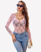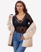- FASHION MATCH: Long sleeve lace bodysuit can match skirt, jeans, or shorts