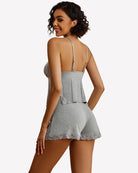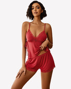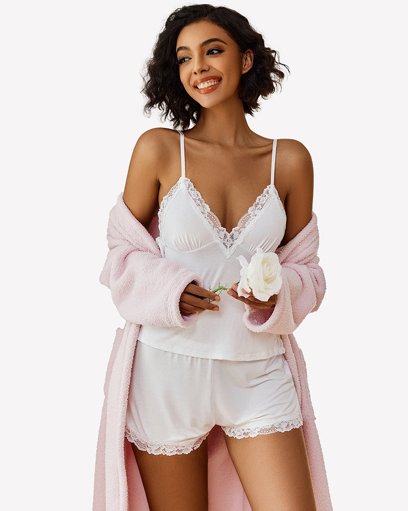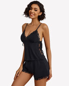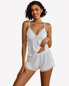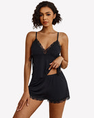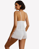 Lace Trim Cami Shorts Side Slit PJ Set