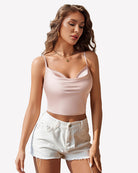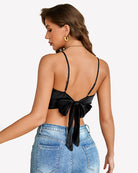 - Design: Damen-Camisole-Oberteile mit kurzem Rückenausschnitt, drapierter Vorderseite, verstellbaren Spaghettiträgern und Schleife auf der Rückseite verleihen Ihrer Garderobe einen Hauch von Glamour.