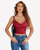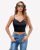 - Material: Das Satin-Crop-Top besteht aus einem weichen und dehnbaren Satinstoff, der Atmungsaktivität, kühlenden Komfort und ein leichtes Tragegefühl bietet, wenn es an einem Sommertag getragen wird.