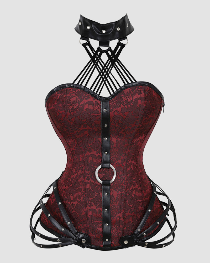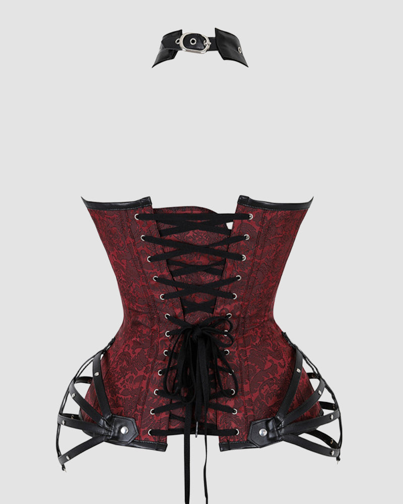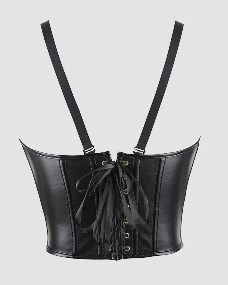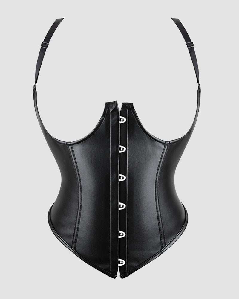 Lace Punk Cut Out Crotchless Pu Bodysuit